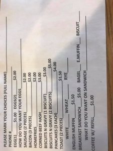 Breakfast menu includes homemade pancakes, corned beef hash, eggs cooked to order, home fries, bacon, sausage and more. Wednesday’s have breakfast specials, and Wednesday July 28th will be a waffle with strawberries for $5.50. To-go’s are welcome by calling 802-257-0438. Attached is our Saturday menu with pricing, which is slightly different than the Wednesday menu. Come in, socialize, have a chat while drinking a coffee, relax. We don’t care. Just come in and be civil.