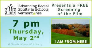 This is an instructional film, originally created for public school staff, teachers, and administrators in Vermont. It was commissioned by the Vermont-NEA Racial Justice Task Force in collaboration with the National Education Association. Bess O’Brien from Kingdom County Productions produced the 30-minute film. She interviewed parents, community members, educators, and students from Vermont. Bess filmed their accounts of living in and going to school in Vermont. These accounts reflect the views and experiences of many people of color around the state. The film will be shown to public school employees, followed by discussions using the accompanying discussion guide. This film and the virtual toolkit “Advancing Racial Equity in Vermont’s Public Schools” will support actions by schools and communities to address racial disparities, bias, and other issues of equity regarding students and staff of color.