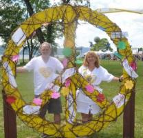 We had so many volunteers and helpers with the B 4 Peace Faires. The art projects included: Inevitability of Peace – a 9 foot tall pyramid of steel with a peace wreath encased in 300 pound block of ice that melted with a single “candle” over several days: