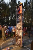 Namaya explained , “Memoria is to recall the events of the past. Hablar is to speak to this pain and loss caused by the dictatorship. Dignidad – Asks how do we create a future of human rights for all. In writing and creating the performance in conjunction with our Mapuche/Chilean dancers, Fraternidad Allyu, we wove the myth of creation into the performance. The poem “Wind Howling in the Night,” by Namaya is based on a Chilean girl’s story of living next to a torture center and was transformed into a dance piece by the dance company TarDanza. Through the music of Victor Jara, the dance and story, and the poetry of Neruda the event was healing and transformational for many. ” One person described it, “It was psycho-magical.” At the end of the performance, the audience walked to the sculpture Tower of Chilean Heroes of Human Rights, a tower over twelve feet tall, with large portraits of heroes of Chilean human rights, joined hands and sang together Gracias a La vida, “Give Thanks to Life.” The director of programs Monserrat said, “This was on the most moving and memorable events we have had at Villa Grimaldi.