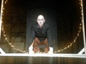 Themes explored in this production are further fleshed out with a set design inspired by Leonardo da Vinci’s famous “Vitruvian Man” drawing as well as Lewis Carroll’s “Through the Looking Glass,” while the creature’s make-up is modeled after Francis Bacon’s “The Life Mask of William Blake” portrait.