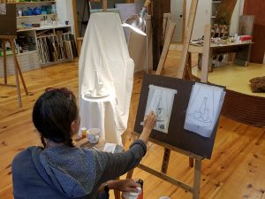 Take a break from your work week and join us at The Drawing Studio for a cup of coffee and some time to draw, paint and read. The brook runs just outside our windows and the art library is full of inspiration. There will be beautiful still life arrangements to draw from, benches to bring outside if you want to work from nature and good instruction if you need it. Mostly there will be coffee, quiet and materials to let you come into relationship with your simple and creative self.