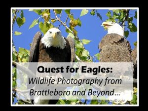 View the raptors and wildlife of Brattleboro through photographic images at the Brooks Memorial Library from February 26th through March 22nd. Photographs, by Dara Carleton Wildlife Photography, will include bald eagles, ospreys, cormorants, song birds, small critters, and water fowl images all taken within a 30 minute drive from Brattleboro. Come view the bald eagles and wildlife that’s right in your backyard! Opening reception will be Wednesday February 27th from 5-7pm.