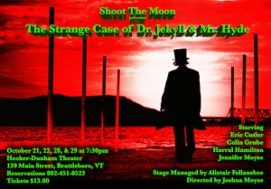 Shows take place Fridays and Saturdays, October 21-22 and October 28-29 at 7:30 p.m. in the Hooker-Dunham Theater & Gallery. General Admission is $13.00. Tickets can be purchased at the door or reserved in advance by calling 802-451-0523.