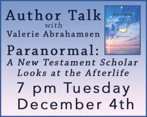 Join us at Brooks Memorial Library at 7 pm on Tuesday, December 4th as Harvard-trained theologian Dr. Valerie Abrahamsen discusses her book Paranormal: A New Testament Scholar Looks at the Afterlife.