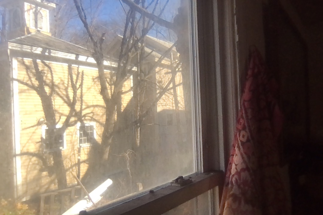 The window could use a good washing. Photo is very unclear between the shadow and dirty window. The white areas including the object on the ground are overexposed with little detail. I am not able to see into the shadow area using lightrooms shadow slider, dehaze etc. A dirty window. There could be some detail DFK-B has in mind but not sure. A vent of some kind on the barn could mean it is being lived in. A piece of clothing next to the window and a dead fly. The tree angle does not look correct. Like it is growing out of the foundation but there is no detail at it’s base. Maybe it is being removed.