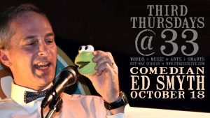 Ed Smyth will weave a bent-mind fabric of brain-twisted topics and micro-sketches as the featured performer of the “3rd Thursdays @ 33” series opener on October 18 at 7:00 PM at Stage 33 Live, 33 Bridge Street in Bellows Falls. He’s an intellect-friendly, upbeat, one-man vaudeville act for grown-ups with a silly streak.
