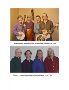 The Seymour Sisters are Betsy Williams, Laura Williams, Beth Spicer, and Kate Wolff, who sing old-time, gospel, country and swing, as well as play a combination of banjo, mandolin, guitar, dobro and stand-up bass.