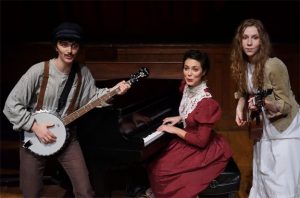 With themes that are described as “mythic, with a lot of magic and hyper-theatricality,” the two-act piece has some 20 original musical numbers, with the performers accompanying themselves on piano, guitar and banjo and moving from musician to storyteller as they tell their characters’ stories in a folksy style.