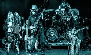 The music of The Slambovian Circus of Dreams has been described as “hillbilly-Floyd,” “alt-country, roots-rock,” and “surreal Americana” – a clear indicator of its singularly indescribable uniqueness. The sextet’s melodic avant-folk conjures with an exotic instrumental arsenal (accordion, cello, mandolin, theremin) in addition to standard rock regalia, and a palette of styles ranging from dusty Americana ballads to huge Pink Floydesque cinematic anthems. Dancing freely between all existing religious and philosophical mythologies, the music is uplifting, empowering, and a lot of fun.