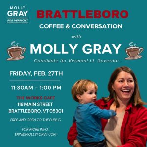 Join Molly Gray, candidate for Vermont Lt. Governor, in Brattleboro for coffee & conversation.