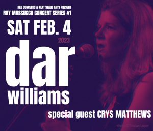 Since the runaway success of her first album, THE HONESTY ROOM, Dar Williams has become one of the most beloved singer/songwriters in America. Songs such as “When I Was A Boy,” “The Babysitter’s Here,” “The Christians and the Pagans” and “After All” are classics, and her books, “Amalie,” “What I Learned In A Thousand Towns” and “How To Write A Song That Matters” are thought-provoking and inspirational. Her fourth appearance at the Bellows Falls Opera House kicks off the Ray Massucco Concert Series. Fast-rising newcomer Crys Matthews opens.