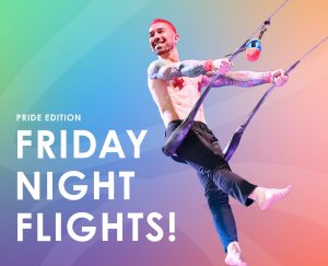 It’s Pride Month! Come celebrate pride with a flying trapeze class. Rainbow attire encouraged! This class is for flyers at every level of ability and experience—whether you’ve never tried flying trapeze before, or you’re working on taking tricks out of lines. Beginning students will learn how to take off from the platform, perform fundamental trapeze tricks, and begin working on the ‘swing’—the bread and butter of flying trapeze. More experienced flyers will continue to work on fundamentals and on advancing their trick vocabulary. In the last half hour of class, flyers who are ready will be able to take their tricks across to a catcher (one of their coaches) swinging from a second trapeze.
