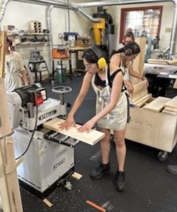Learn. Through demonstrations and hands on learning, students will be guided through the proper use and safety of the jointer, planer, table saw, bandsaw, router and drill press. We will also use hand tools and hand power-tools to create joinery and surface texture on wood. Topics covered include properties of wood, woodworking materials, milling lumber four square, methods for shaping wood, common joinery, hand tools for cutting joinery, glue ups, sanding & basic finishing techniques.