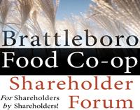 In August a few disheartened shareholders started the Brattleboro Food Coop Shareholder Forum – for shareholders, by shareholders. We meet on the third Sunday of the month from 5:00-7:00pm in the Coop Community Room. All are welcome.