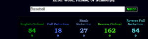Check out the Gematria of “Baseball” check it out at http://gematrinator.com/calculator/index.php