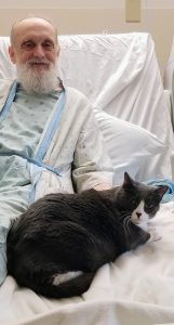 Photo: Thanks to advocacy efforts led by two different people on my behalf, my cat, Miss Cleo was allowed to visit me during my stay at the Central Vermont Medical Center (CVMC) late last year (2024).