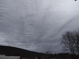 Earlier in the week (forget which day), the sky was covered horizon to horizon by long ropey clouds that one could imagine being spawned from jet contrails.