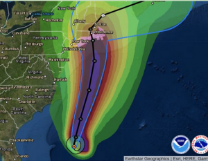 As of 11 PM Sat, it looks like the storm will head East after it hits Mass. We’ll get a little rain, but not too much wind.