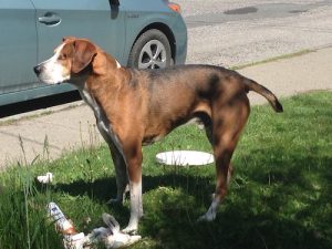 Anyone missing their dog? A fairly healthy looking dog came trotting down the street today. No collar, and I don’t recognize him from around these parts.