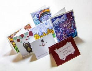 You can also buy card-making materials and create your own cards. Zephyr’s and Staples usually have blank cards with envelopes.