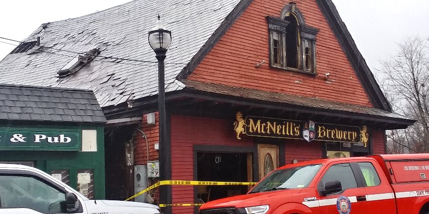McNeill’s Brewery, local gathering place and pub, was lost to a fire last night during Gallery Walk. One person, not yet identified, died in the blaze which apparently started in the upstairs apartment at 90 Elliot St.