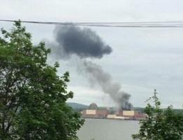 The second photo is of Entergy’s Indian Point plant in NY. The smoke is from a transformer fire which sent thousands of gallons of oil leaking into the Hudson River