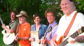 The Bondville Boys, so named because “some of us are from Bondville, and some of us are boys,” consists of Jake Geppert (banjo, guitar and vocals), Tom Morris (guitar and banjo), Laura Molinelli (guitar and vocals), Dennis Fink (bass and vocals) and Ben Campbell (guitars, mandolin and vocals).