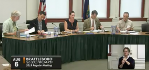 Before the Brattleboro Selectboard could get to regular business, they heard from many agitated citizens on issues such as the homeless, flowers, and librarians getting paid less than homeless day work program employees. This was interrupted by a climate emergency protest, adding to the list of grievances.