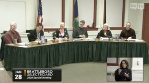 The Brattleboro Selectboard held a quick meeting to approve the FY21 budget, Town Meeting warning, and Representative Town Meeting warning. They also discussed a planned sidewalk for the new Hinsdale Bridge and changes to RT 142.