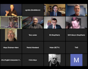 Terry – – my whole internet went down. I am versatile. I was a single parent with a bi-racial daughter raising her in Brattleboro;eboro. There was polite racism. Now she is a bisexual biracial person. I’m an artists. People are often gay or of different origins and I personally enjoy it, but I’ve been here 40 years. (breaking up…) Act 250 and we challenged a huge warehouse grocery distribution on Putney Rd. It was controversial at the time. I’m… (breaking up)… through BCTV, and got involved and help document the Act 250 process. I worked on climate at the high school in the 90’s. I produced a show every year at BCTV, and waved a year and was a good listener. The production came out better by waiting. I was also involved with the dog shooting. That was incendiary and passionate, and through the CPCC, and those of us who stuck with it were rewarded. Police were trained in how to handle dogs. I also spearheaded the wetland cleanup, and it took several years to connect the dots and getting people interested. I’m good at following through. I’m passionate about the condition of the world right now. This is an incredible opportunity.