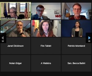 Liz – what to do about selectboard meetings? Continue on zoom as we have, have in person meetings, or have some sort of hybrid? I think we all need to understand these meetings are of long duration, and if indoors they are for long durations. The other thing about zoom is that it provides us with more people participating, and that it provides us board members with flexibility – if people are traveling they can still log on. A hidden bonus of zoom that we should take advantage of as we can. Peter, hybrid technology?