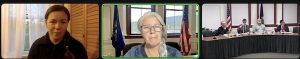 Elizabeth McLoughlin and Jessica Gelter appear remotely this evening. Jess says she “is still COVID positive.”