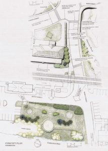 Gemma – I love the idea of doing something to make a new public park, but I have a number of concerns. I don’t see any way for a disable person to access the interior of the park – no wheelchair or ramp access. I don’t see any lighting or seating or tables, or trash receptacles and I would like to see some performance space. There is ample room for a small stage for people to perform. Lighting and electrical needs to go in. I don’t see any of that. I’d like to see it added. It is a public park, not part of the museum. It should be more than just sculpture.