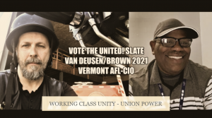 As we near the 2021 Vermont AFL-CIO Annual Convention (September 18 & 19 at Jay Peak, Northeast Kingdom) I again ask our 11,000+ Union members to support the full United! slate in our internal elections, including Ron Schneiderman (UFCW) for VP At-Large, Danielle Bombardier (IBEW) for Secretary-Treasurer, Dwight Brown (AFSCME) for Executive Vice President, and myself, David Van Deusen (AFSCME) for re-election to the office of President of our State Labor Council.