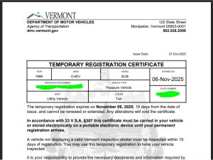 “The registration for your 1999 CHEV SUB expires on November 30, 2025. So, I filled out all the online forms and paid for two years, $167.00 Then it instructed me to download a temporary registration.