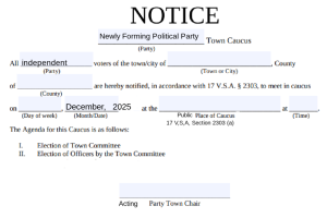 Now, remember, time is running out, I need 4 Vermont voters in each of 10 Vermont towns to start a new minor political party, and each town committee has to give public notice 5 days advance of their caucus/meeting in a public place. So, I figure, Christmas is the deadline. Merry Christmas! And if you aren’t willing to join my little Vermont tax revolution, then don’t whine about your taxes, O.K.?