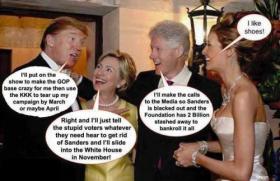 Thanks everyone for your comments. I think the satire stands on its merits. I believe the photo is actual and accurate, as it fits with news stories of the Clintons attending Trump’s wedding. I have another photo apparently taken at the same time, showing these 4 people joking and ‘arranging’ for Trump to run to make things easier for Hillary!