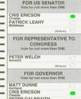 Look at the ballot! Cris Ericson for U.S. Senator: Patrick Leahy refuses to participate in a forum or debate with her. Cris Ericson for Governor: Sue Minter, Matt Dunne, and Peter Galbraith have conspired to exclude her from debates and forums. Not one of them is a true Democrat! Not one of them embraces real Democracy!