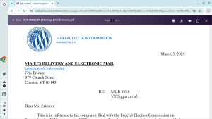 The Federal Election Commission responded to Cris Ericson’s 2022 complaint on March 3, 2025 (just 2 1/2 years after filing the complaint) and they decided they could care less if the bullies in Vermont are oppressing opposing points of view.
