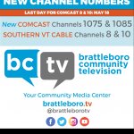 The public is invited to join the staff and Board of Directors for BCTV’s Annual Meeting on September 21 at 6 PM. The meeting will be held in Suite 306 on the third floor of the Brattleboro Municipal Center at 230 Main Street, and will be streamed live on BCTV’s Facebook page. E.D. Cor Trowbridge will share the State of the Station Report, and the results of board elections will be announced. Members and the public are welcome to share comments and suggestions in person or via Facebook comment. Refreshments will be served.