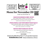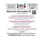 Leda’s Kitchen Chef-Prepared Meals, Menu for November 13