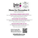 Leda’s Kitchen Menu for November 6: Saag Paneer + more